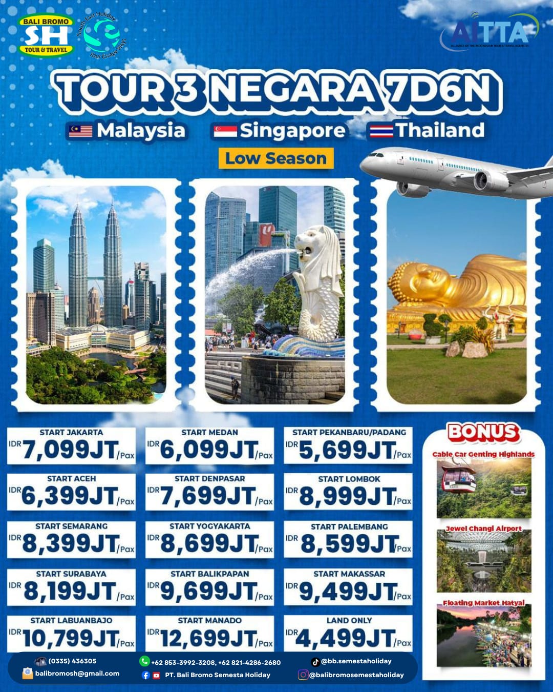 Eksplorasi tiga negara dalam satu perjalanan lengkap.